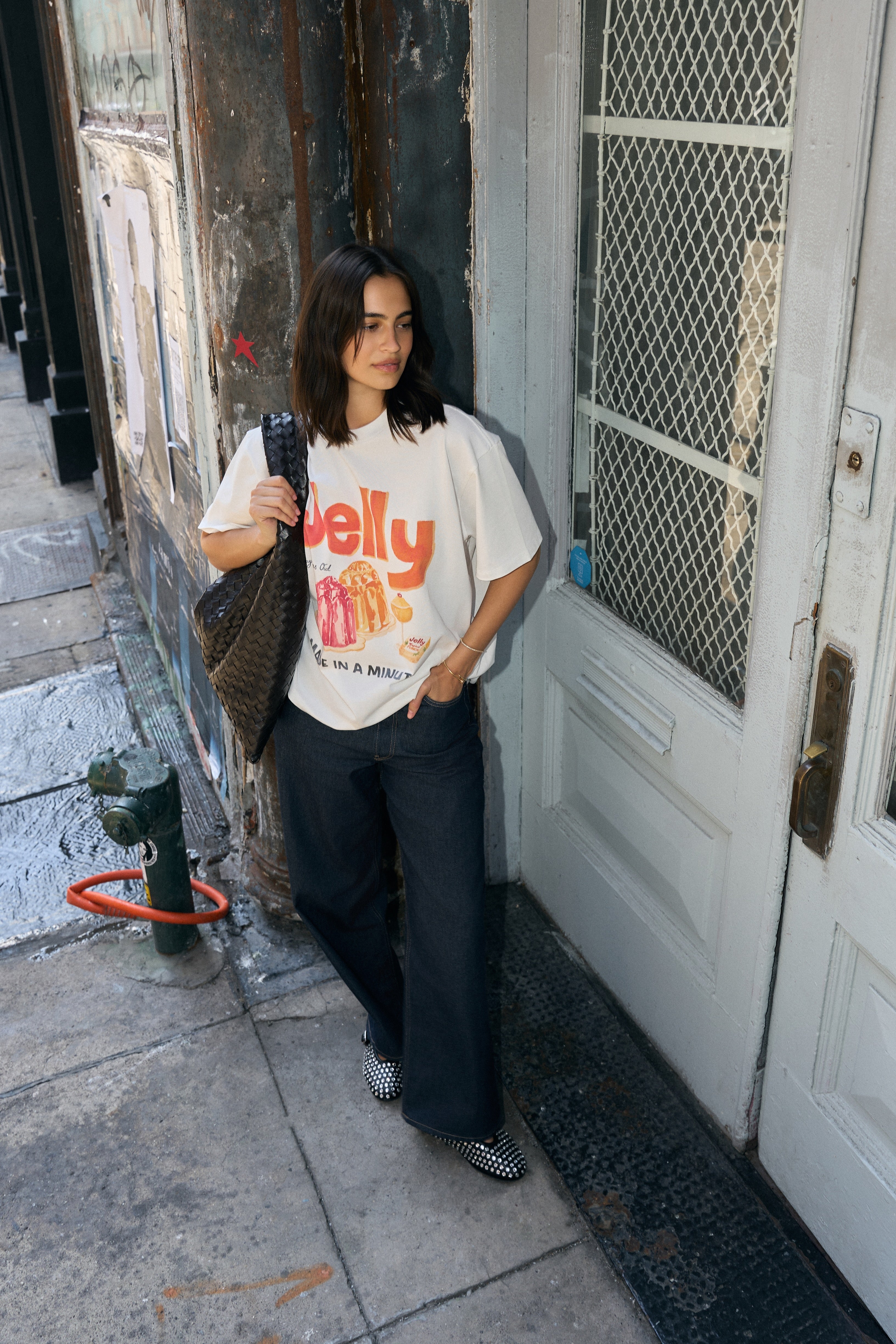 A nod to 70s nostalgia and corner-store kitsch, this tee brings playful art into everyday wear. Boxy, oversized, and made from 100% cotton, it’s soft, bold, and made to last.