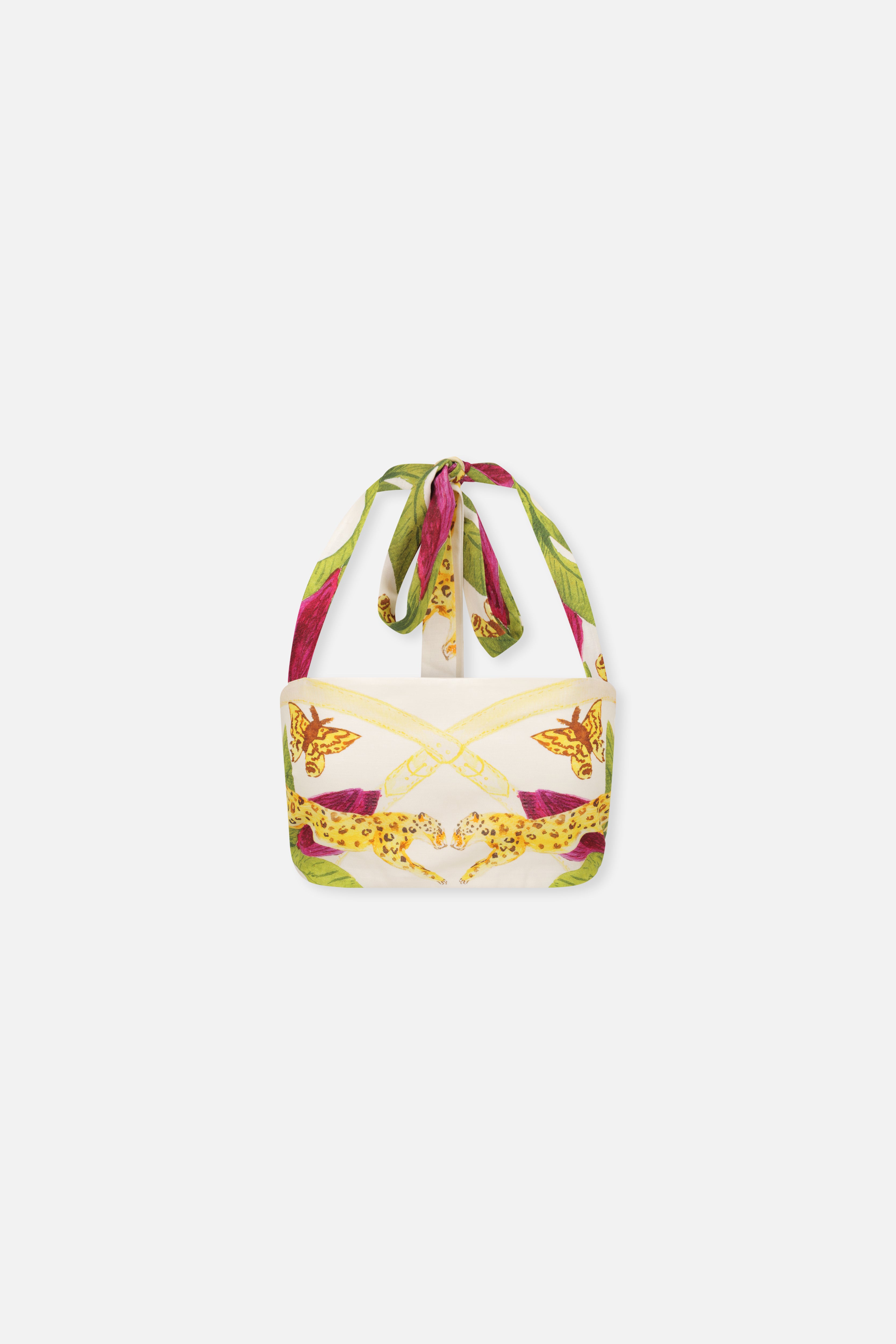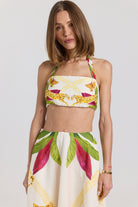 Effortless and striking, the Monaco Scarf Crop is designed to turn heads. Cut in a halter neck silhouette from a breathable linen viscose blend, this piece features our custom Monaco scarf artwork on a soft cream base. The open back and adjustable tie create a flattering, feminine shape perfect for warm days and balmy nights.