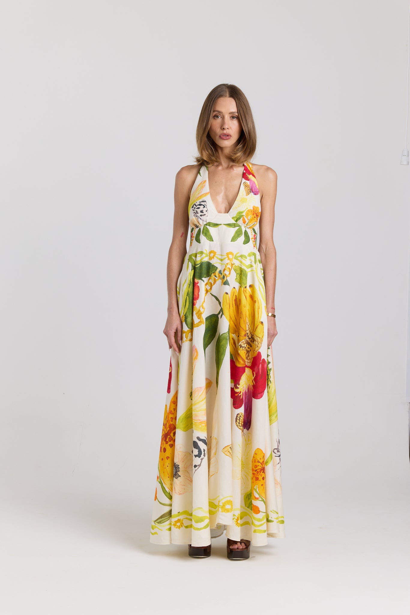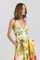 Romantic and effortless, the Paloma Scarf Dress is designed in a halter neck silhouette with a softly shirred back for comfort and shape. This flowing style features our signature Paloma scarf artwork, made for sun drenched days and long summer evenings.