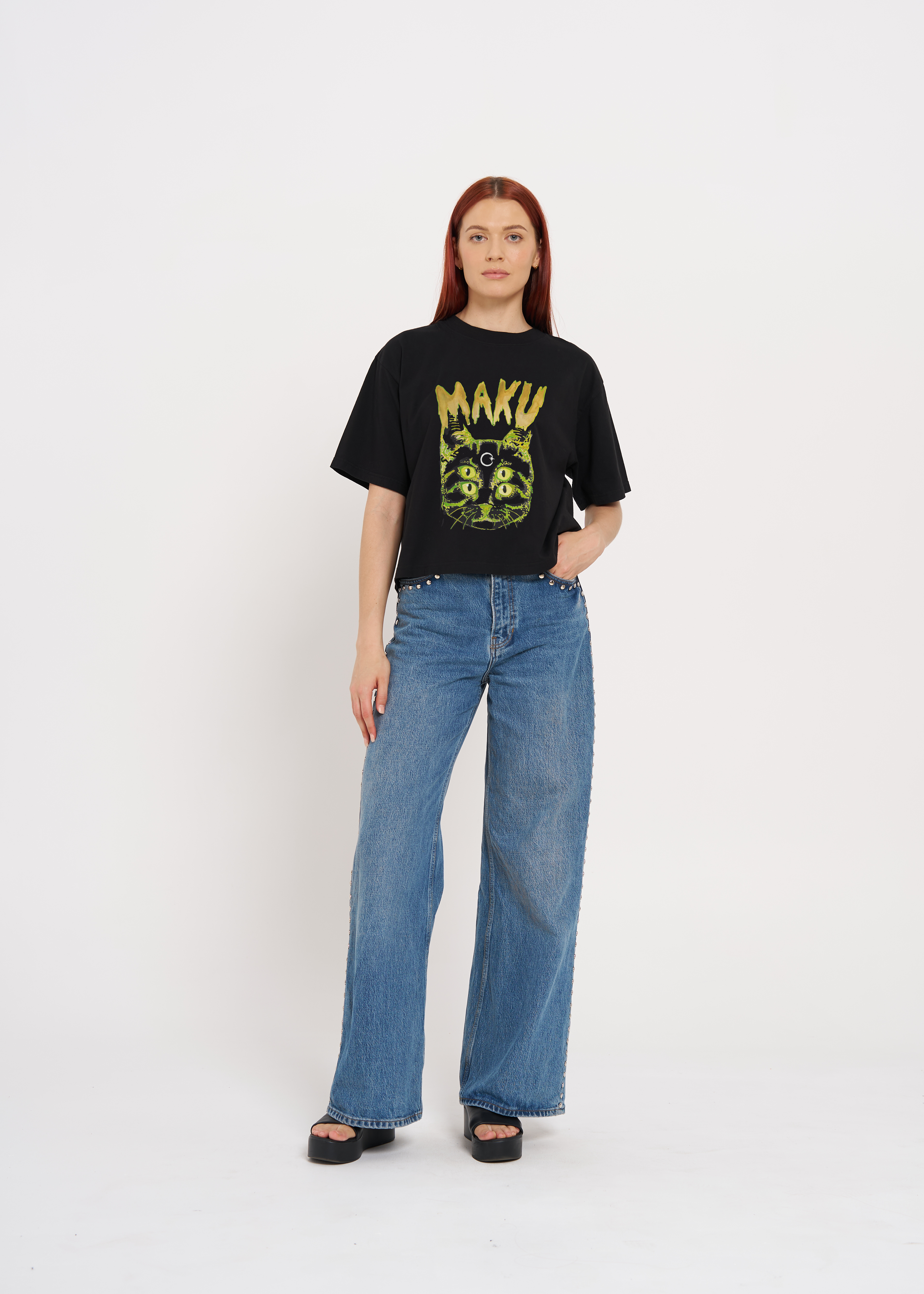 Space Cat Boxy Crop Tee