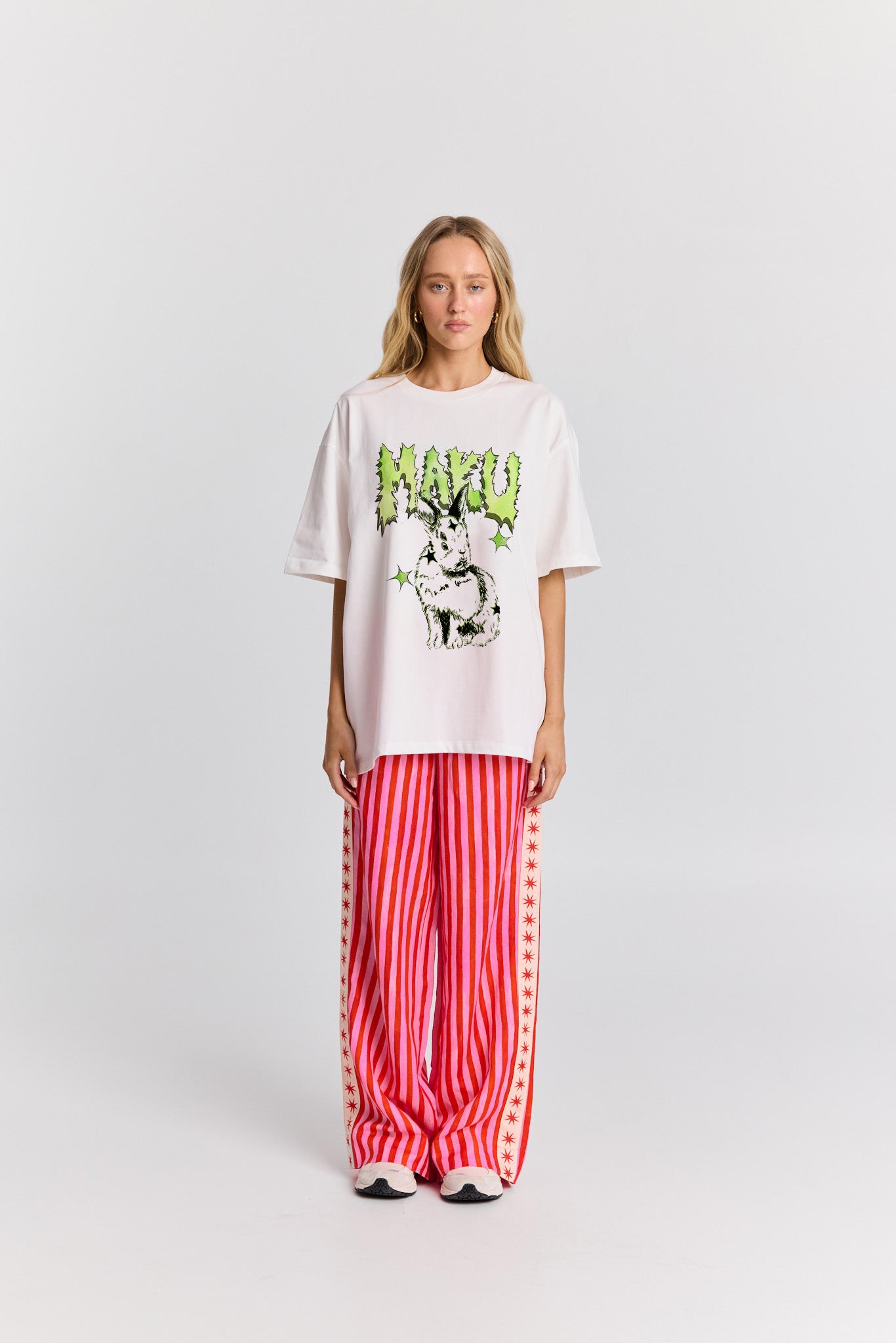 Featuring MAKU’s hand-illustrated bunny artwork paired with bold graphic lettering, this tee balances sweetness with edge