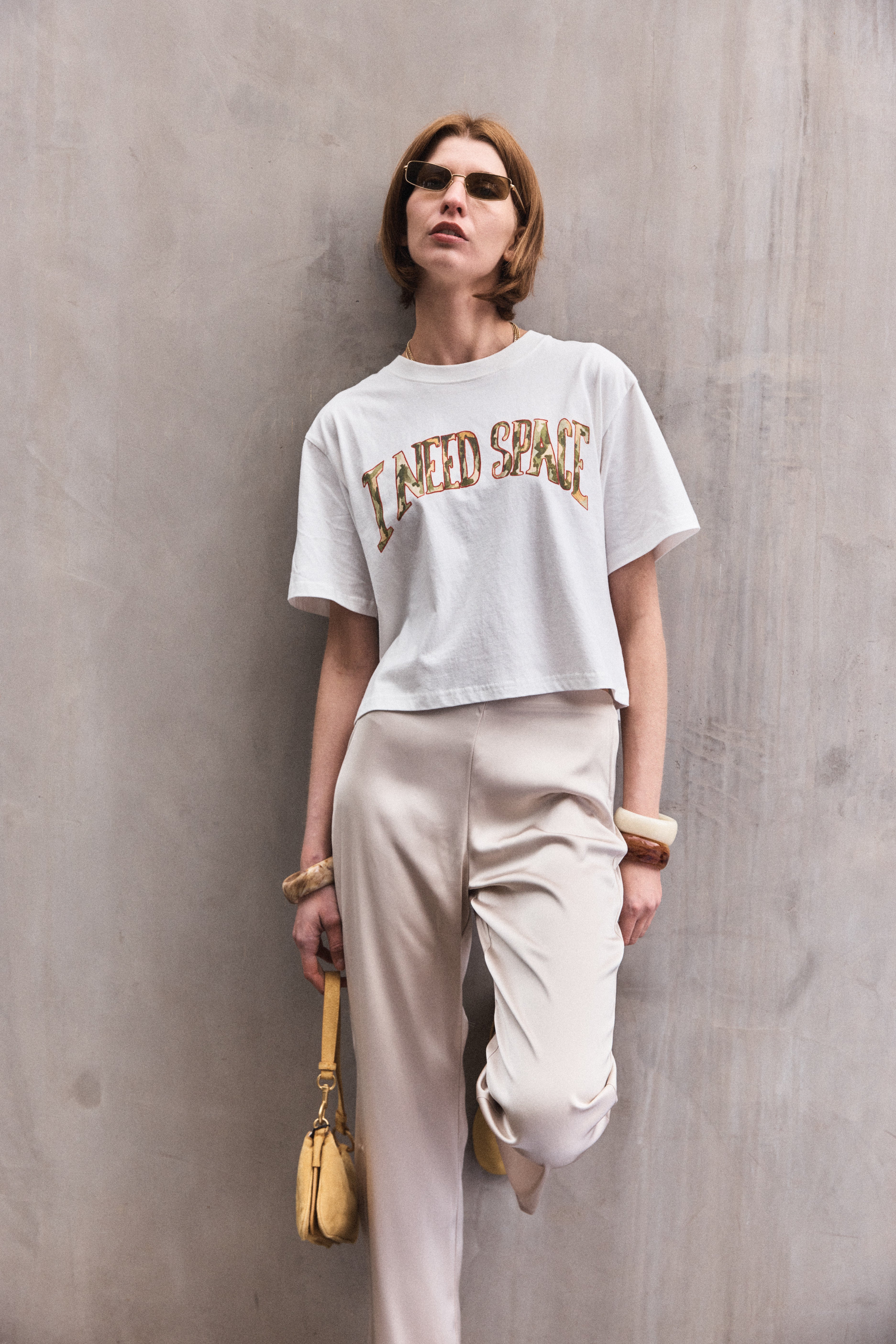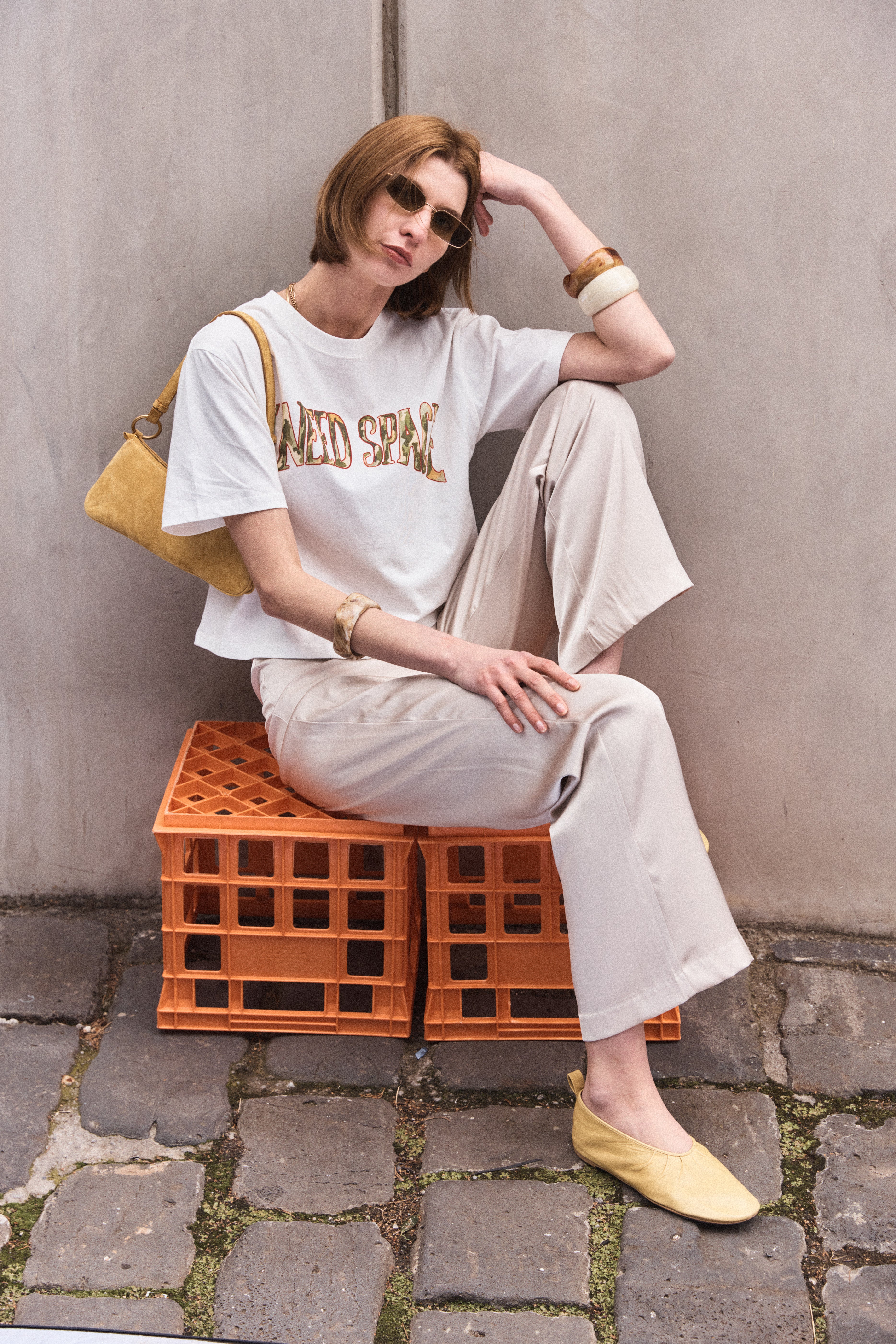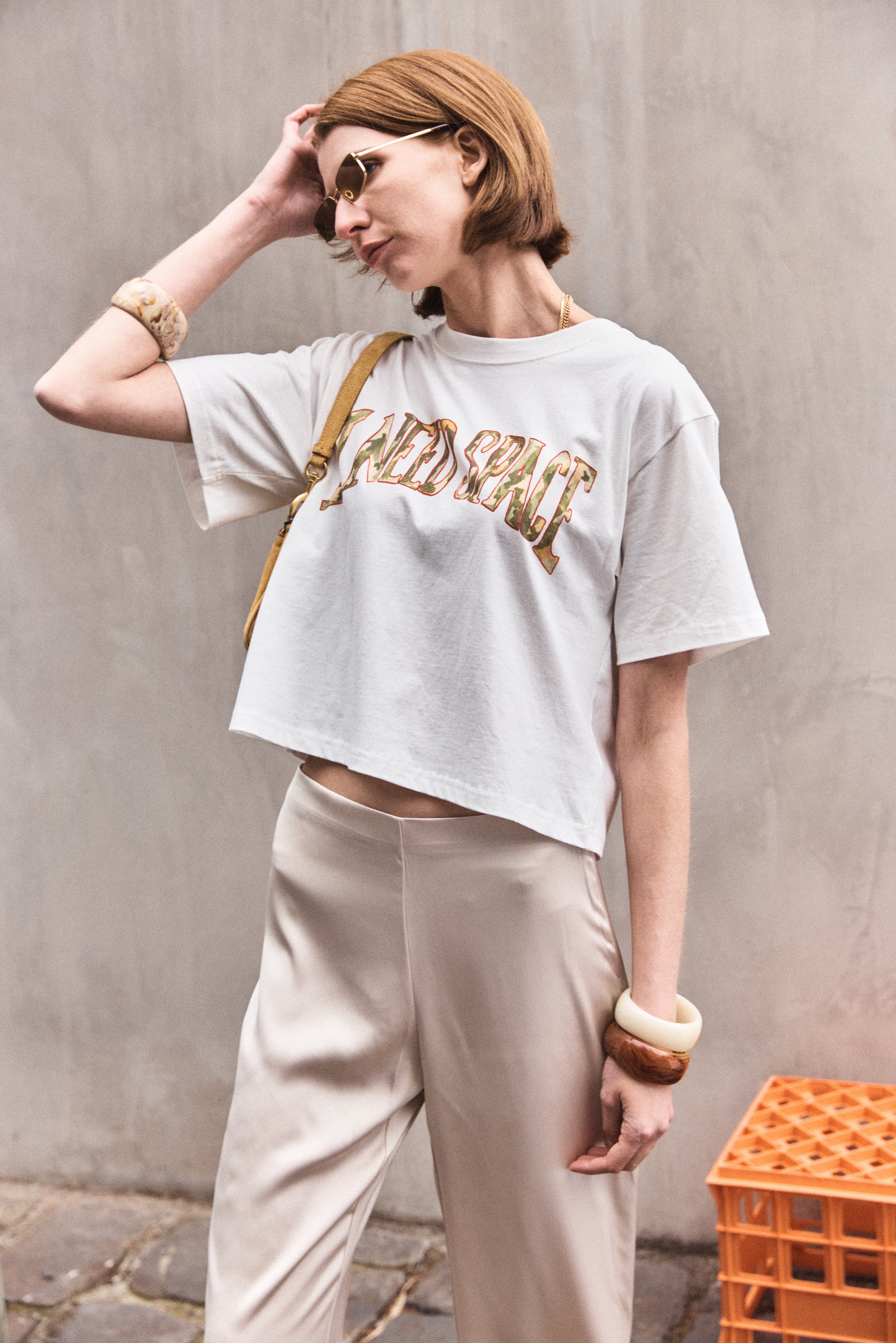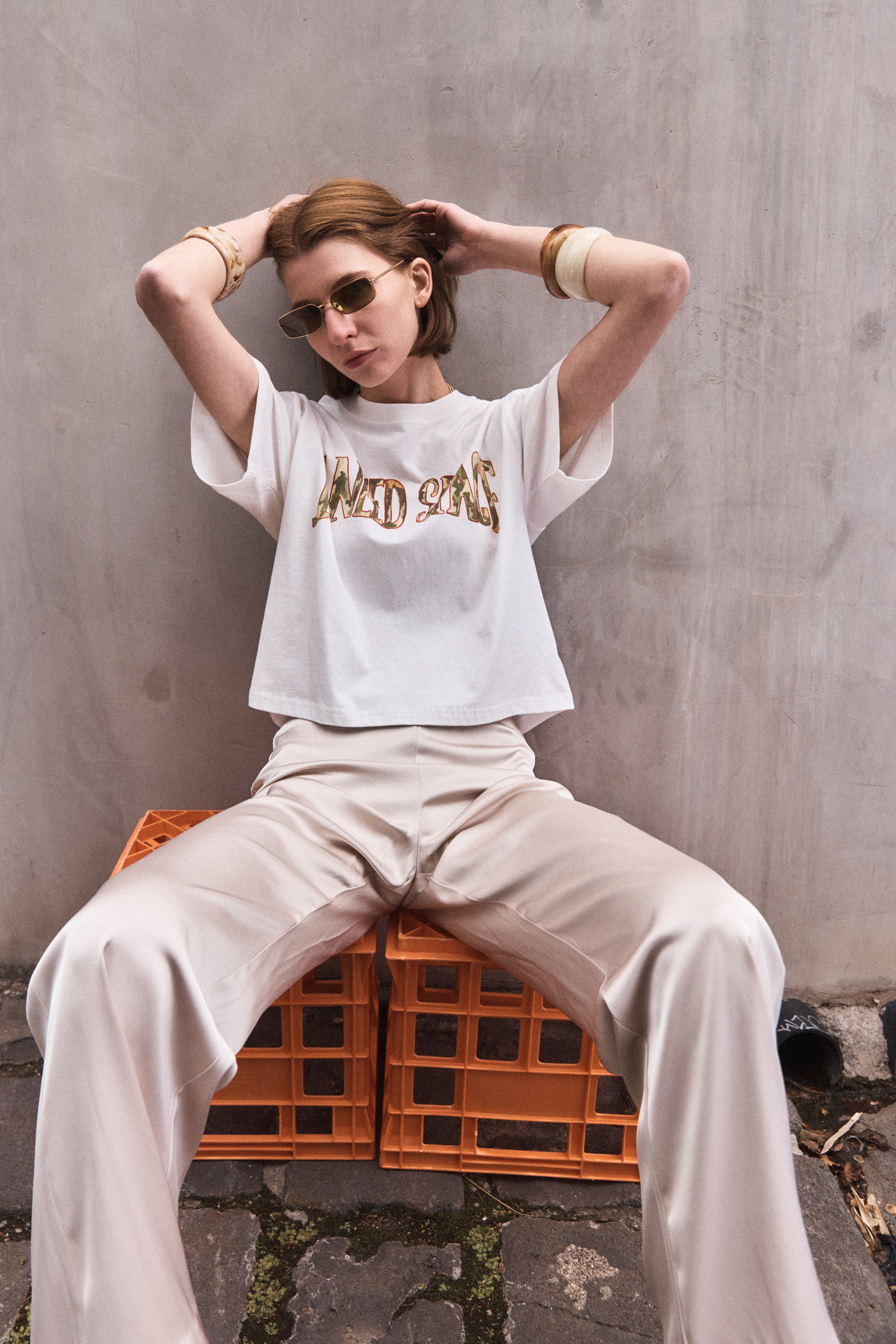 A relaxed, slightly cropped fit that sits just below the belly button. Crafted in 190gsm brushed cotton for a soft, vintage-feel finish. Featuring original hand-painted artwork by Maku, printed with long-lasting, colour-fast quality. Easy to wear. Made to collect.