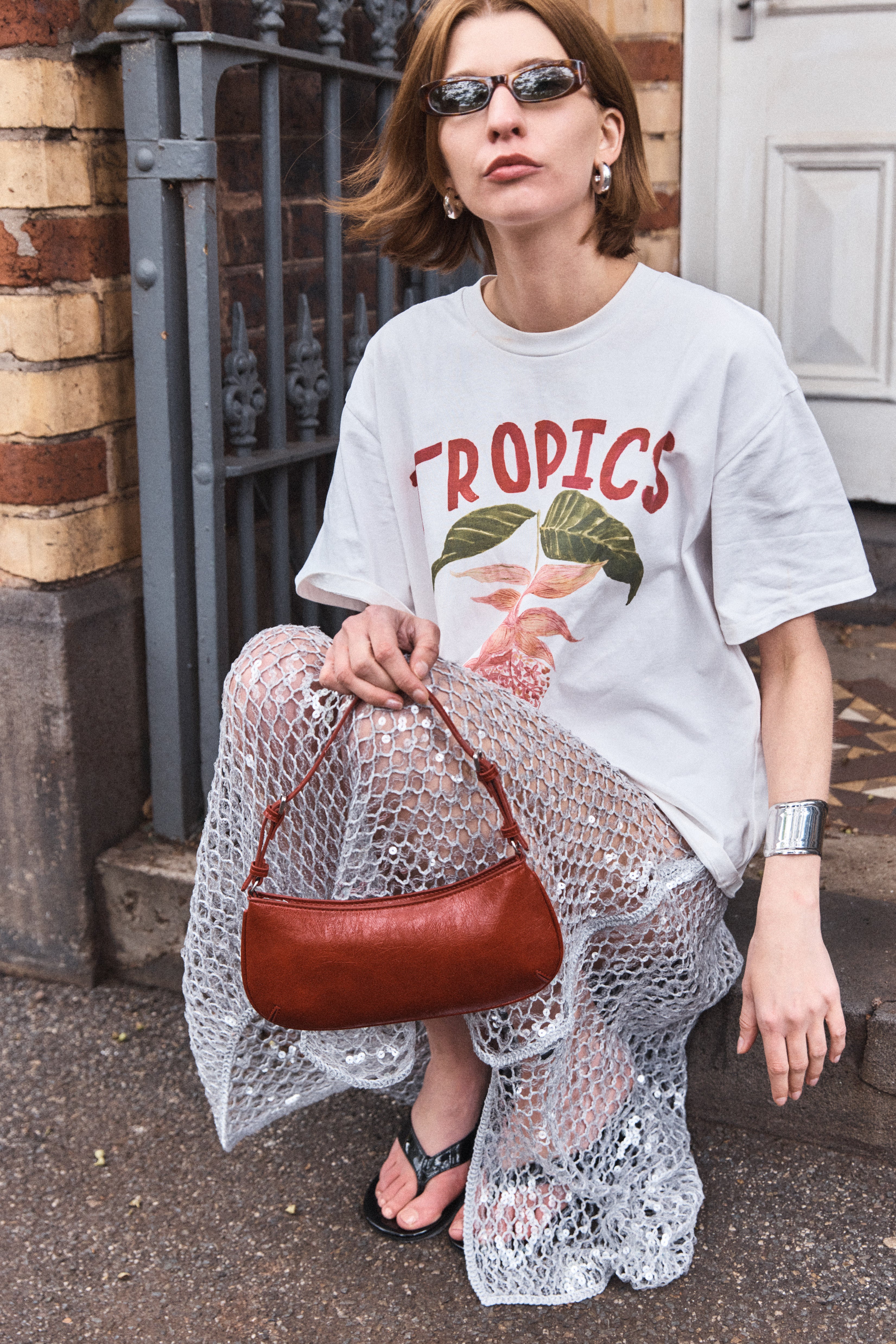 Our cult-favorite oversized tees are crafted from 100% thick cotton, designed to last while offering a buttery-soft hand feel. We don't recommend sizing up - our oversized tees are just that, oversized. You may wish to size down if you have a smaller frame.