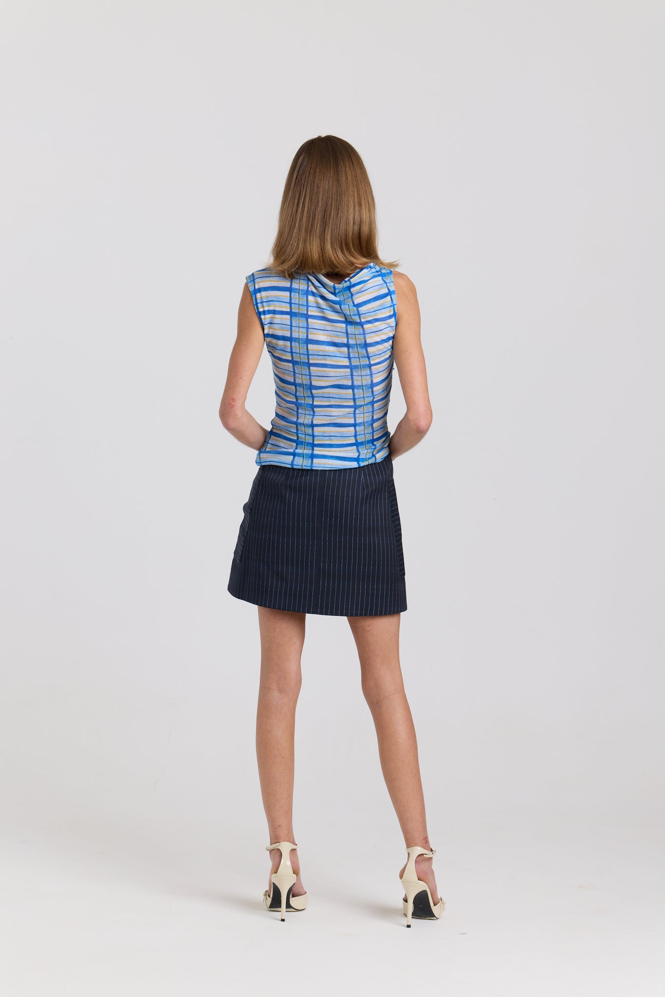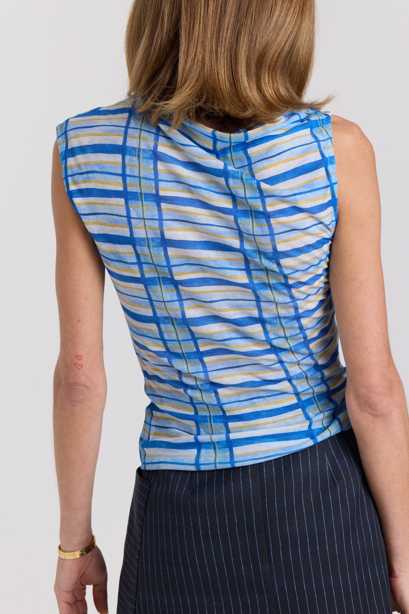 The Del Mar Tank is a refined reinterpretation of our beloved long sleeve, redesigned into a sleeveless silhouette. Featuring soft gathering at the waist and an asymmetrical hem, it creates a flattering, sculpted shape with effortless ease.