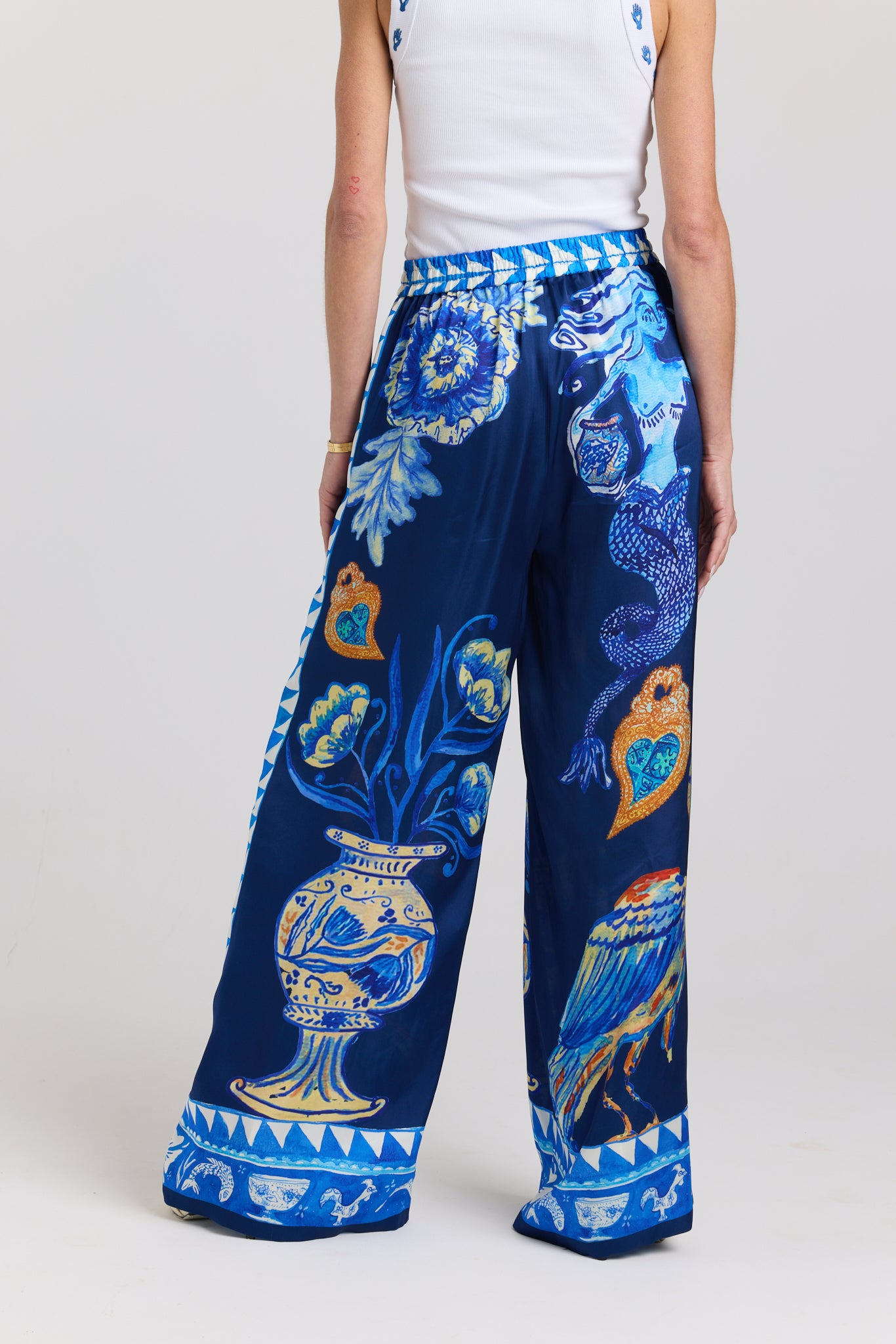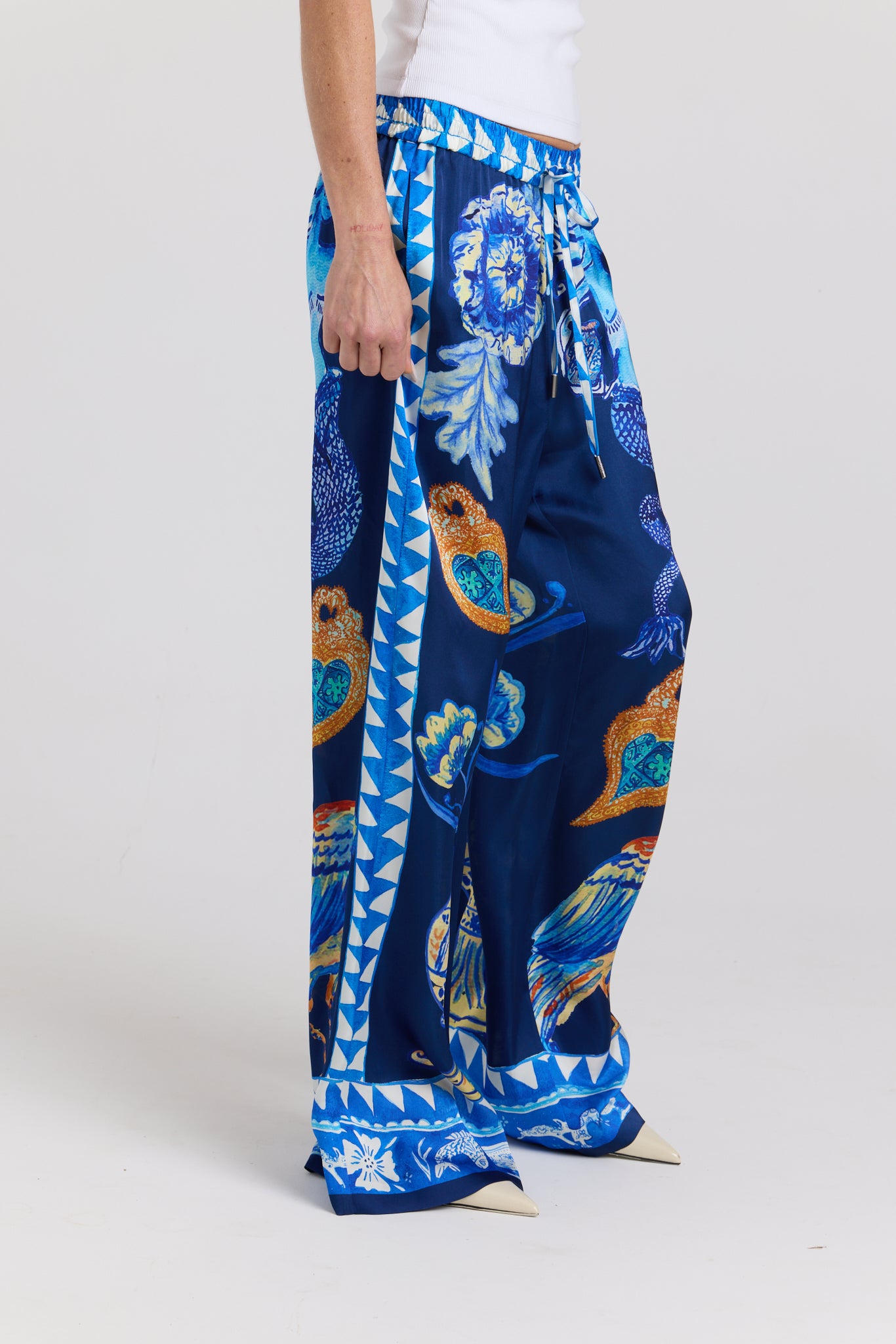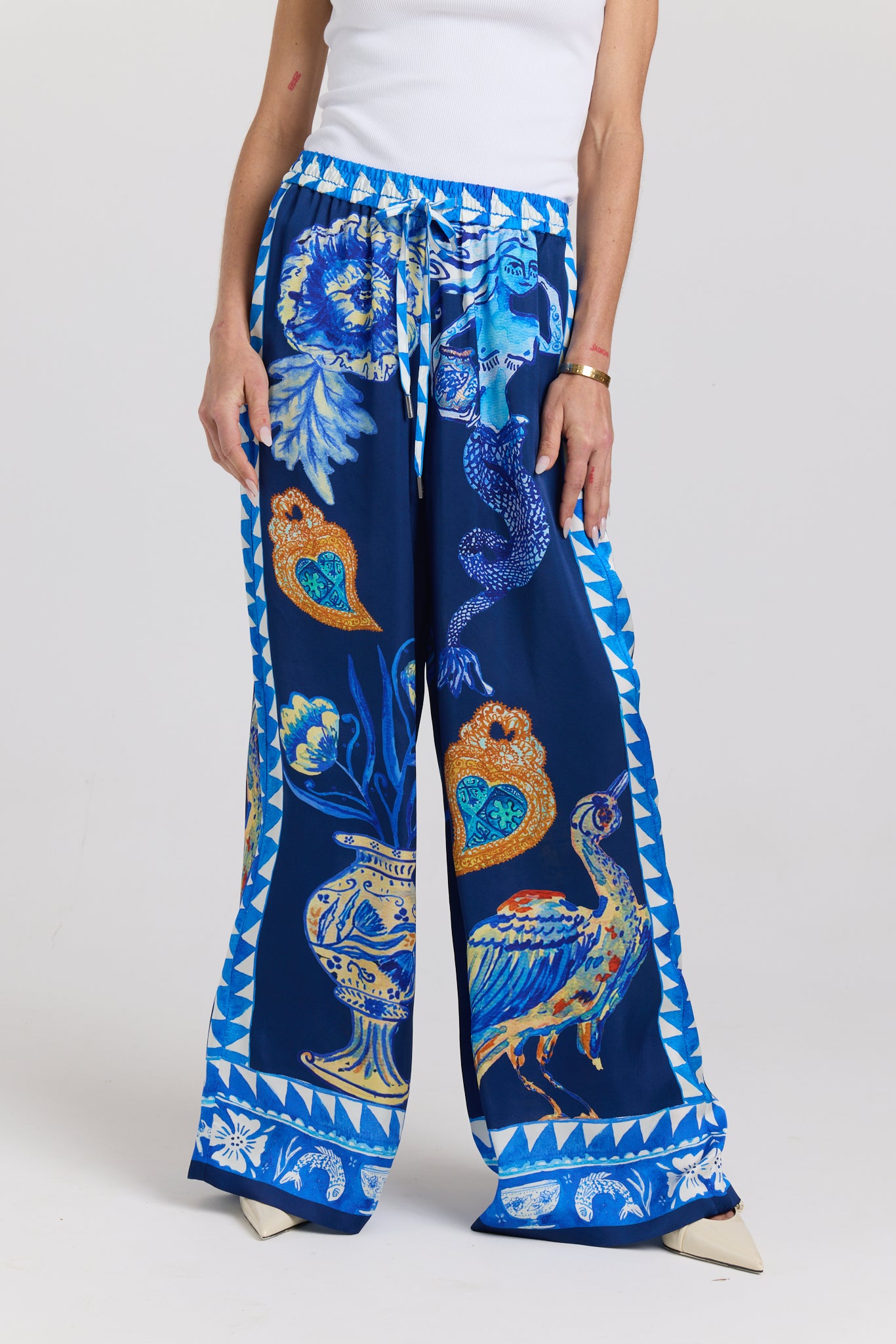 The Lisboa Pant is designed for fluid movement and effortless elegance. Crafted in satin with stunning all over artwork, this style brings softness and refinement to everyday dressing.