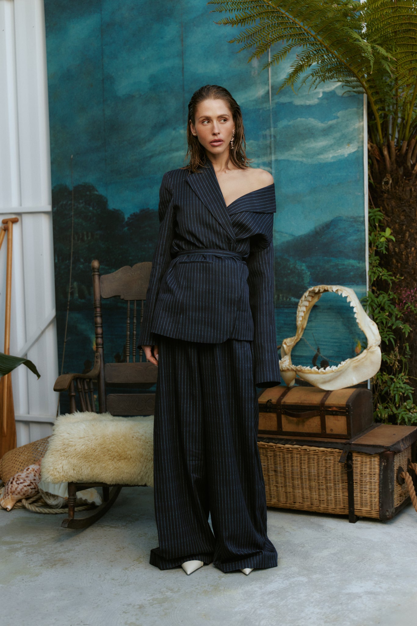 The Santorini Trouser is a refined take on modern tailoring, blending feminine elegance with masculine edge. Featuring side pleats and signature D ring detailing, this style is designed for effortless confidence and elevated everyday wear.