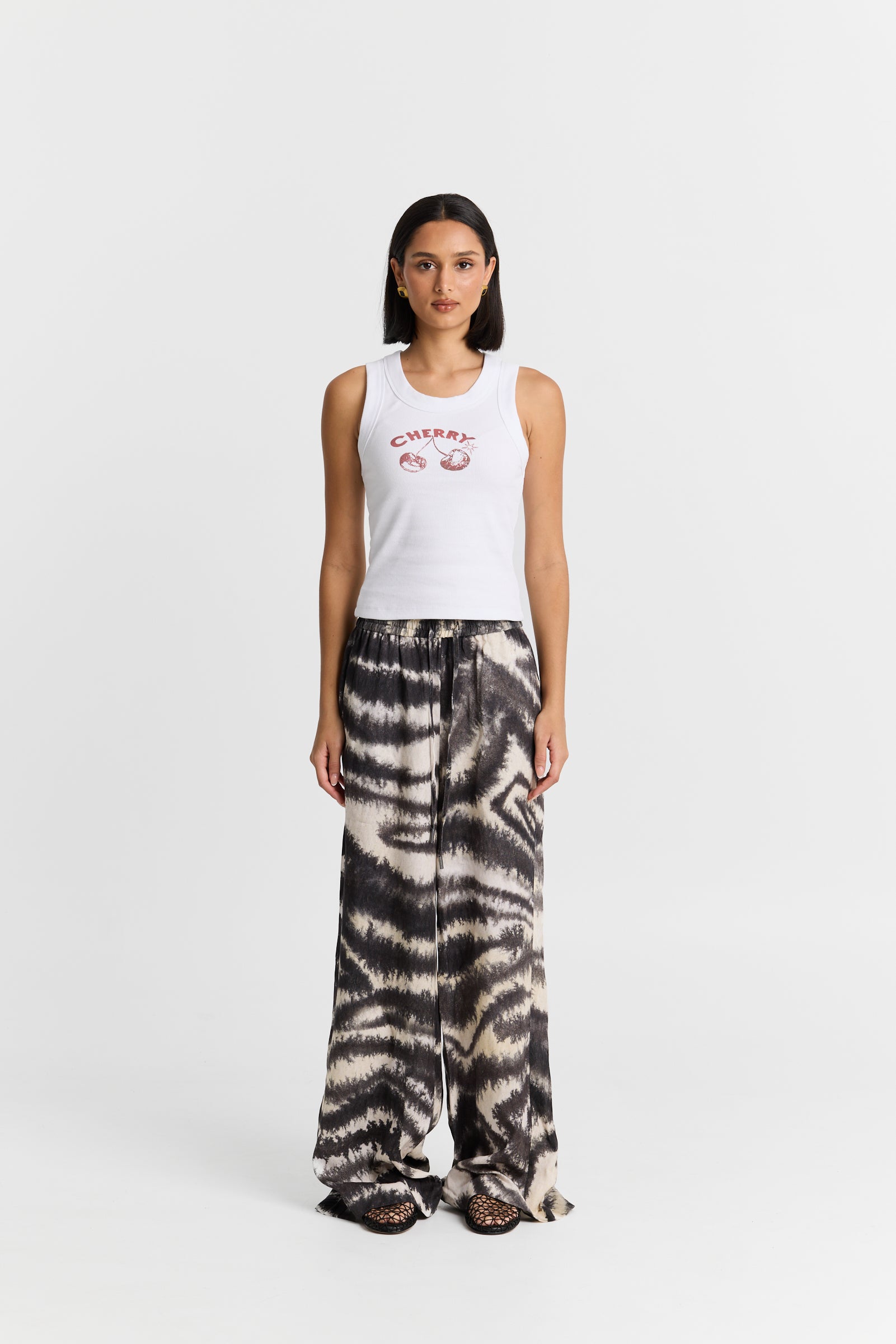 The Cherry Rib Tank is cut from a thick, stretch cotton rib that hugs the body and gently cinches at the waist for a flattering, sculpted fit.